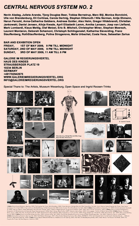 Nevin Aladag, Julieta Aranda, Tjorg Douglas Beer, Tobias Bernstrup, Marc Bijl, Mauro Bonacina, Monica Bonvicini, Ulla von Brandenburg, Eli Cortinas, Carola Dertnig, Stephan Dillemuth / Nils Norman, Antje Ehmann, Harun Farocki, Anna-Catharina Gebbers, Andreas Golder, Alex Heim, Gregor Hildebrandt, Christian Jankowski, Daniel Jensen, Oskar Korsár, Alicja Kwade, April Elizabeth Lamm, Annika Larsson, Joep van Liefland, Mark Lombardi, Luca Maffei, Klaus Mettig, Olaf Metzel, Eric B. Mitchell, Christopher Miner, Stephan Moersch, Laurent Montaron, Deborah Schamoni, Christoph Schlingensief, Katharina Sieverding, Franz Stauffenberg, RothStauffenberg, Polina Stroganova, Alexandros Tzannis, Malte Urbschat, Costa Vece, Sebastian Zarius