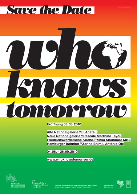 Die beteiligten Künstler fordern auf zum Dialog über Fragen, die angesichts gegenwärtiger ökonomischer, sozialer und politischer Umbrüche aktueller sind denn je. Ist die Unsicherheit der Zukunft die größte Sicherheit, die wir heutzutage haben? Der Titel der Ausstellung „Who Knows Tomorrow“ ist inspiriert von einer Aufschrift auf einem kleinen Personenbus in Afrika, der zufällig fotografiert wurde. Die in Afrika weit verbreitete Lebensweisheit steht nun als sinnstiftendes Thema für die Ausstellung.
